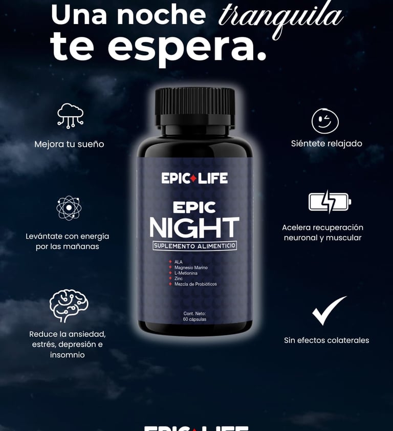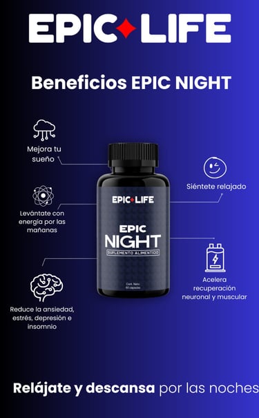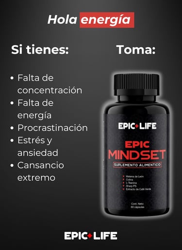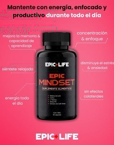 En Epic Life, estamos comprometidos con tu vida épica. Nuestra misión es potenciar el poder de tu cerebro a través de suplementos que mejoran tu energía y enfoque durante el día y promueven un descanso reparador por la noche.